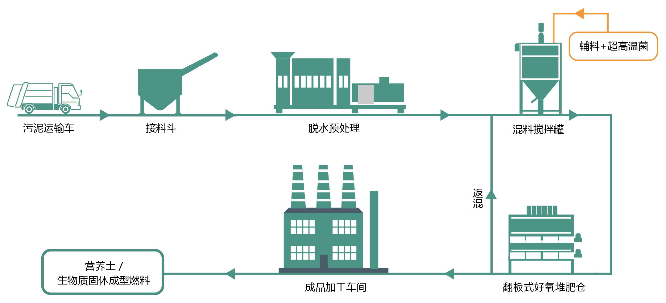 丰辉华宝作为污泥处理的整体方案供应商,为客户提供项目的投资、设计、建设和运营等全流程服务,以“超高温好氧发酵脱水+深度处理”为核心技术,以成套工艺链和核心设备为主要产品,针对不同客户群体的需求提供订制化服务。